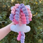 Features: Fast-finish hair and tail; low-sew arms (crocheted directly into the body)